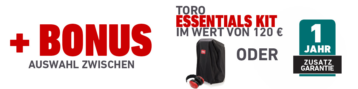 *Kaufen Sie eines der aufgeführten RECYCLER- oder SUPER RECYCLER-Modelle und lösen Sie Ihr kostenloses Toro Essentials Kit oder ein zusätzliches Jahr Garantie ein. Nachstehend finden Sie Anweisungen, wie Sie Ihre Prämie einlösen können.*